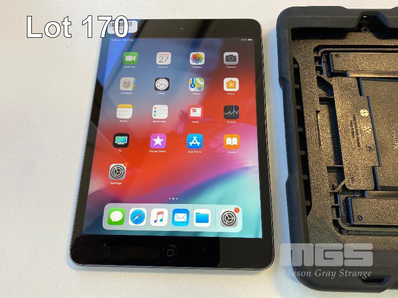 APPLE iPAD MINI 2, 16GB, Wi-Fi, SPACE GREY, MODEL A1489 WITH KENSINGTON RUGGED CASE (NO CHARGER, NO CABLE) (NOTE: CRACK LINE ON SCREEN) S/N:DLXN2K73FCM5