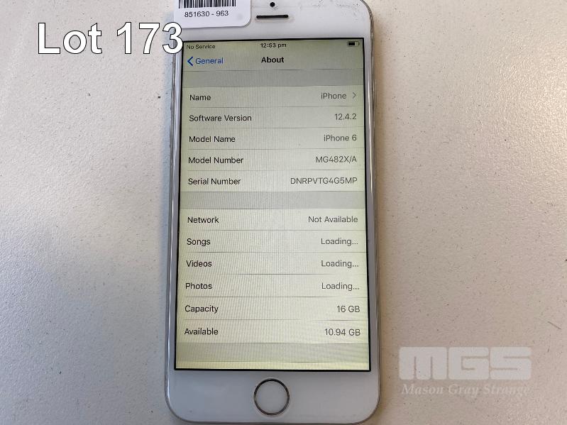 APPLE iPHONE 6, 16GB, SILVER, MODEL A1586 (NO CHARGER, NO CABLE) S/N:DNRPVTG4G5MP