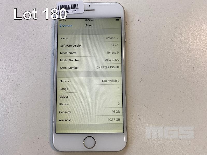 APPLE iPHONE 6, 16GB, SILVER, MODEL A1586 (NO CHARGER, NO CABLE) S/N:DNRPX0RJG5MP