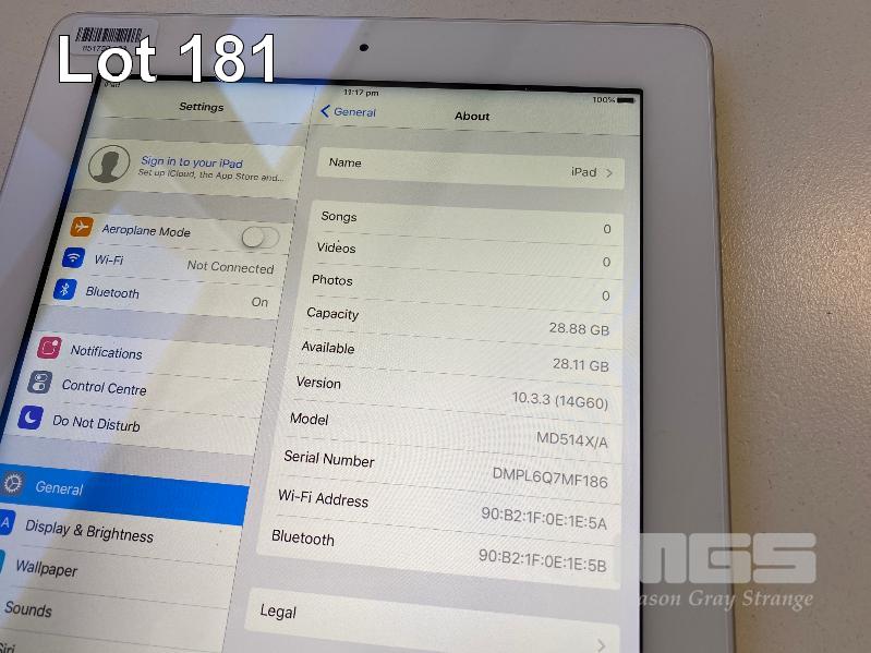 APPLE iPAD 4TH GEN, 32GB, Wi-Fi, SILVER, MODEL A1458 (NO CHARGER, NO CABLE) S/N:DMPL6Q7MF186