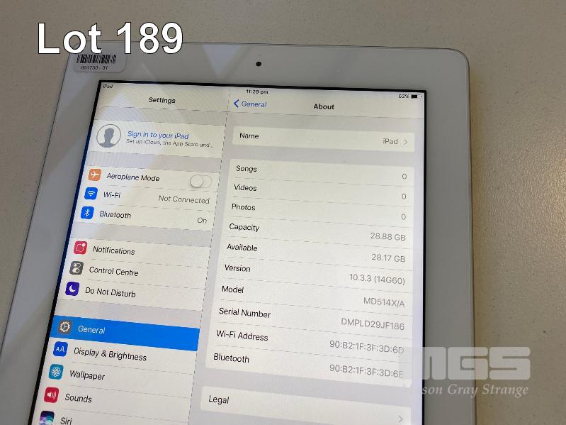 APPLE iPAD 4TH GEN, 32GB, Wi-Fi, SILVER, MODEL A1458 (NO CHARGER, NO CABLE) S/N:DMPLD29JF186