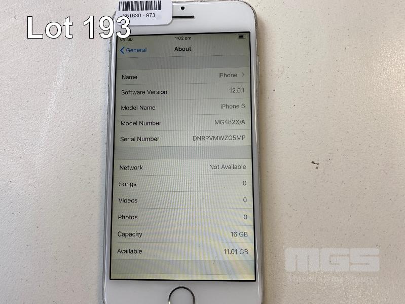 APPLE iPHONE 6, 16GB, SILVER, MODEL A1586 (NO CHARGER, NO CABLE) S/N:DNRPVMWZG5MP