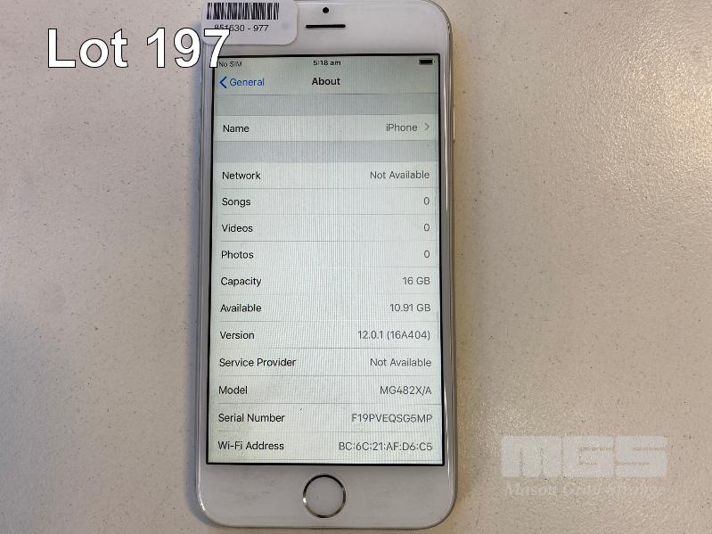 APPLE iPHONE 6, 16GB, SILVER, MODEL A1586 (NO CHARGER, NO CABLE) S/N:F19PVEQSG5MP