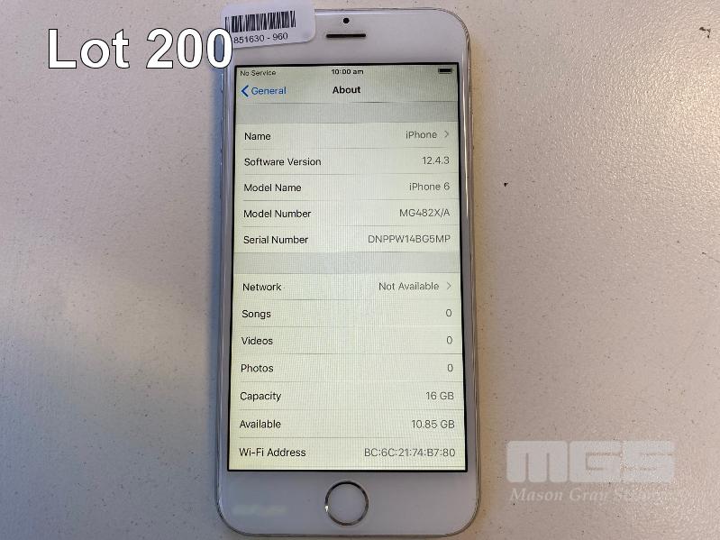 APPLE iPHONE 6, 16GB, SILVER, MODEL A1586 (NO CHARGER, NO CABLE) (NOTE: SCRATCHES ON BACK) S/N:DNPPW14BG5MP