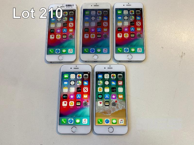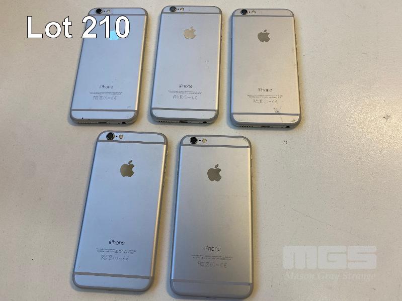 5 x APPLE iPHONE 6, 16GB, SILVER, MODEL A1586 (NOTE: ALL HAVE VARIOUS SCREEN BLEMISHES, 2 x WITH TOUCH ID FAULTS) (NO CHARGERS, NO CABLES) S/N:DNTPWXYPG5MP, DNRPVNQKG5MP, DNPPWL5CG5MP, DNPPWF04G5MP, F19PVJ9ZG5MP
