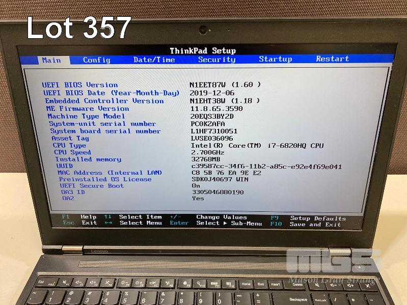 LAPTOP, LENOVO THINKPAD P50 MOBILE WORKSTATION (20EQS3BY2D), CORE i7 6820HQ (6TH GEN) @ 2.7GHz, 32GB DDR4 RAM, 512GB SSD, 15.6" WIDESCREEN (1920x1080), 4GB NVIDIA QUADRO M2000M VIDEO, Wi-Fi, BLUETOOTH, WINDOWS 10 PRO INSTALLED & POWER SUPPLY S/N:PC0K0WFQ