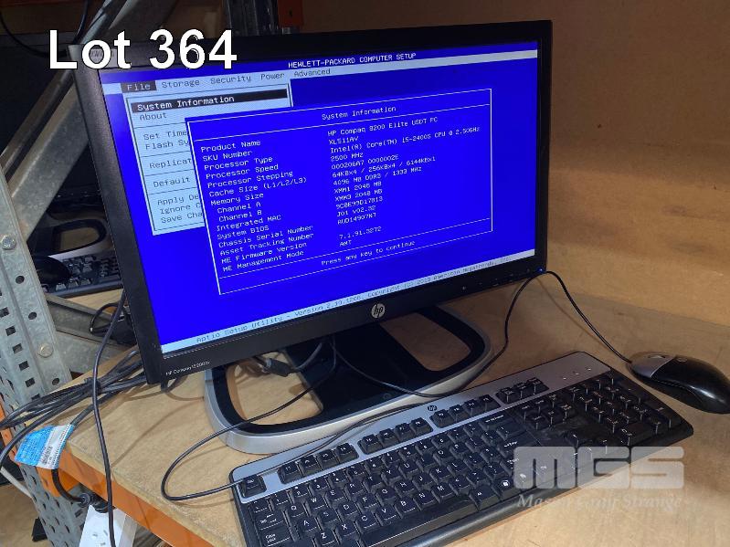 DESKTOP PC, HP COMPAQ 8200 ELITE USDT, CORE i5 2400S (2ND GEN) @ 2.5GHz, 4GB DDR3 RAM, NO HDD, KEYBOARD, MOUSE & POWER SUPPLY WITH HP COMPAQ LE2002x 20" LCD WIDESCREEN MONITOR ON INTEGRATED STAND S/N:AUD14907N7