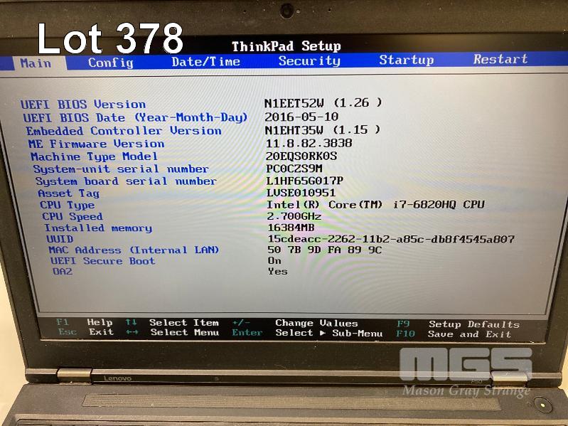 LAPTOP, LENOVO THINKPAD P50 MOBILE WORKSTATION (20EQS0RK0S), CORE i7 6820HQ (6TH GEN) @ 2.7GHz, 16GB DDR4 RAM, 256GB SSD, 15.6" WIDESCREEN (1920x1080), 4GB NVIDIA QUADRO M2000M VIDEO, Wi-Fi, BLUETOOTH, WINDOWS 10 PRO INSTALLED & POWER SUPPLY (NOTE: DAMAGE TO CASING RHS) S/N:PC0CZS9M