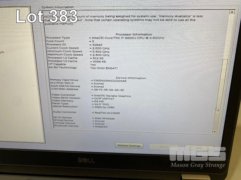 LAPTOP, DELL LATITUDE E7470, CORE i7 6600U (6TH GEN) @ 2.6GHz, 16GB DDR4 RAM, 256GB SSD, 14" WIDESCREEN (1920x1080), INTEL SKYLAKE GRAPHICS, Wi-Fi, BLUETOOTH, WINDOWS 10 HOME INSTALLED, DOCKING STATION & POWER SUPPLY S/N:F3TKGC2