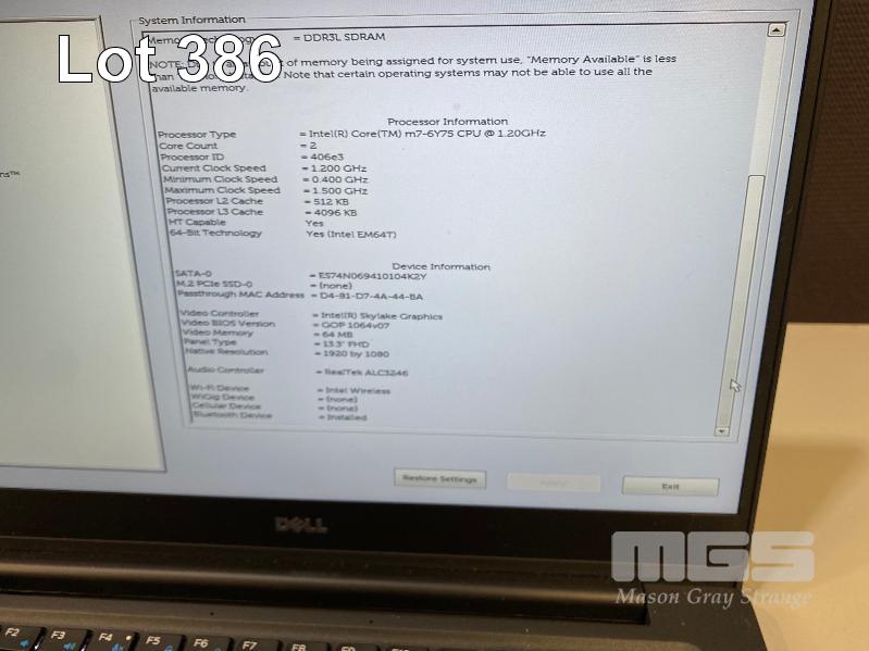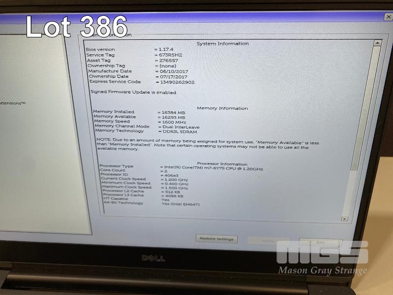 LAPTOP, DELL LATITUDE E7370, CORE m7-6Y75 @ 1.2GHz, 16GB DDR3 RAM, 512GB M.2 SSD, 13.3" WIDESCREEN (1920x1080), INTEL SKYLAKE GRAPHICS, Wi-Fi, BLUETOOTH, WINDOWS 10 PRO INSTALLED & USB-C POWER SUPPLY S/N:673R5H2
