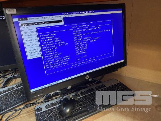 DESKTOP PC, HP COMPAQ 8200 ELITE USDT, CORE i5 2400S (2ND GEN) @ 2.5GHz, 2GB DDR3 RAM, NO HDD, KEYBOARD, MOUSE & POWER SUPPLY WITH HP COMPAQ LE2002x 20" LCD WIDESCREEN MONITOR ON INTEGRATED STAND (NOTE: SCRATCHES ON SCREEN) S/N:AUD14907NZ
