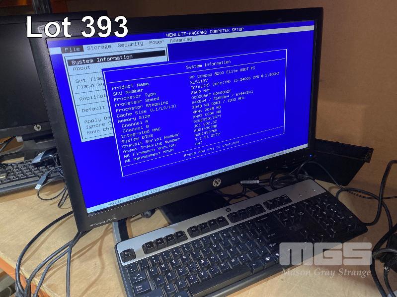 DESKTOP PC, HP COMPAQ 8200 ELITE USDT, CORE i5 2400S (2ND GEN) @ 2.5GHz, 2GB DDR3 RAM, NO HDD, KEYBOARD, MOUSE & POWER SUPPLY WITH HP COMPAQ LE2002x 20" LCD WIDESCREEN MONITOR ON INTEGRATED STAND (NOTE: SCRATCHES ON SCREEN) S/N:AUD14907NB