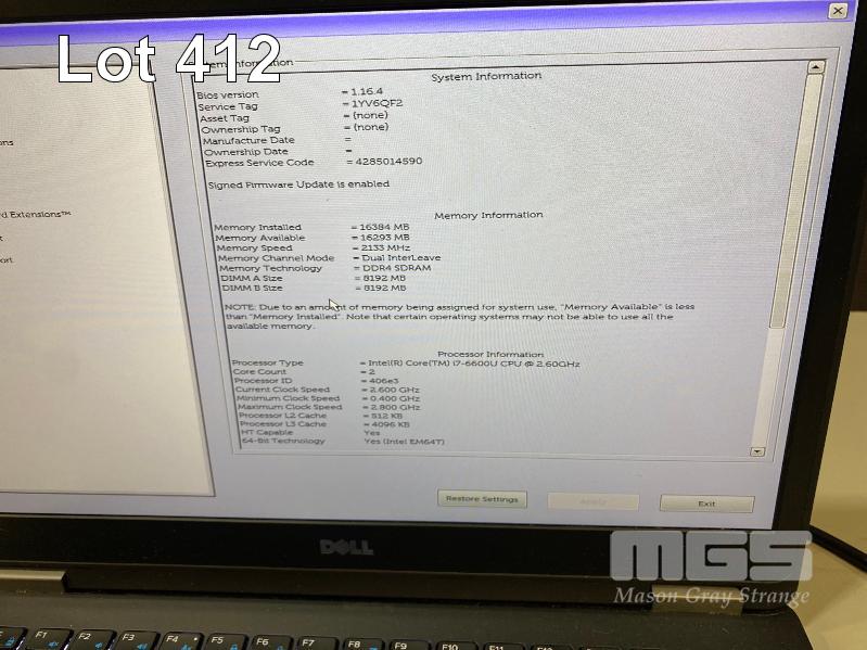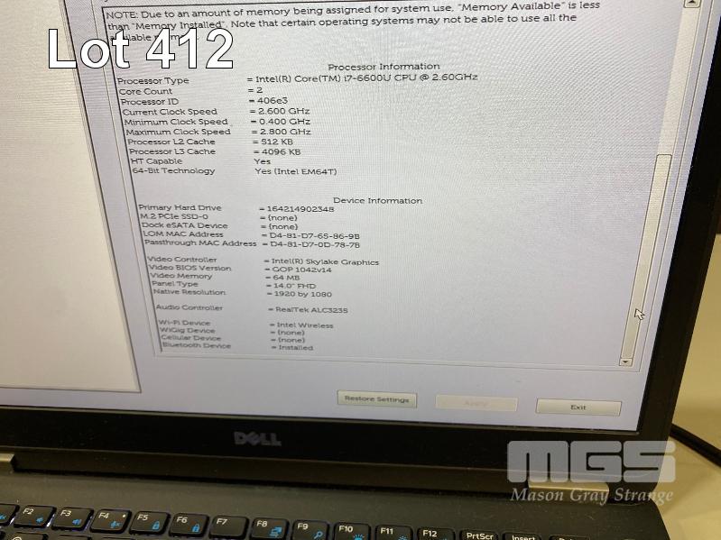 LAPTOP, DELL LATITUDE E7470, CORE i7 6600U (6TH GEN) @ 2.6GHz, 16GB DDR4 RAM, 256GB SSD, 14" WIDESCREEN (1920x1080), INTEL SKYLAKE GRAPHICS, Wi-Fi, BLUETOOTH, WINDOWS 10 HOME INSTALLED, DOCKING STATION & POWER SUPPLY (NOTE: NO BATTERY) S/N:1YV6QF2