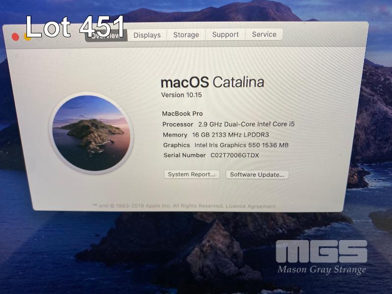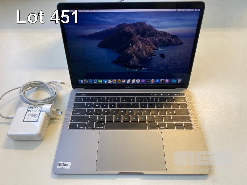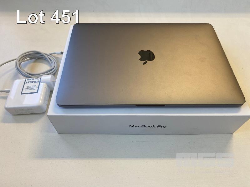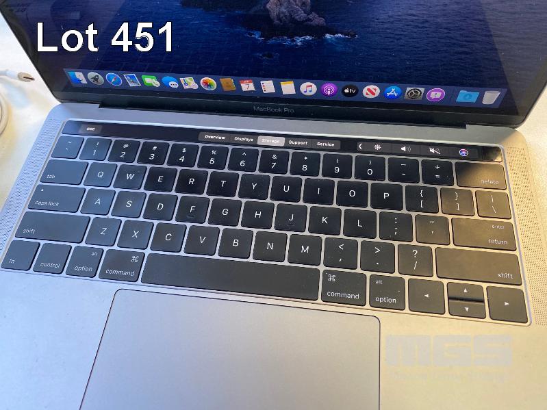 LAPTOP, APPLE MACBOOK PRO (A1706), CORE i5 6267U (6TH GEN) @ 2.9GHz, 16GB DDR3 RAM, 256GB SSD, 13.3" WIDESCREEN (2560x1600), INTEL IRIS GRAPHICS, TOUCHBAR, Wi-Fi, MAC OS 10.15 INSTALLED & POWER SUPPLY (NOTE: MINOR DAMAGE ON CASING) S/N:C02T7006GTDX