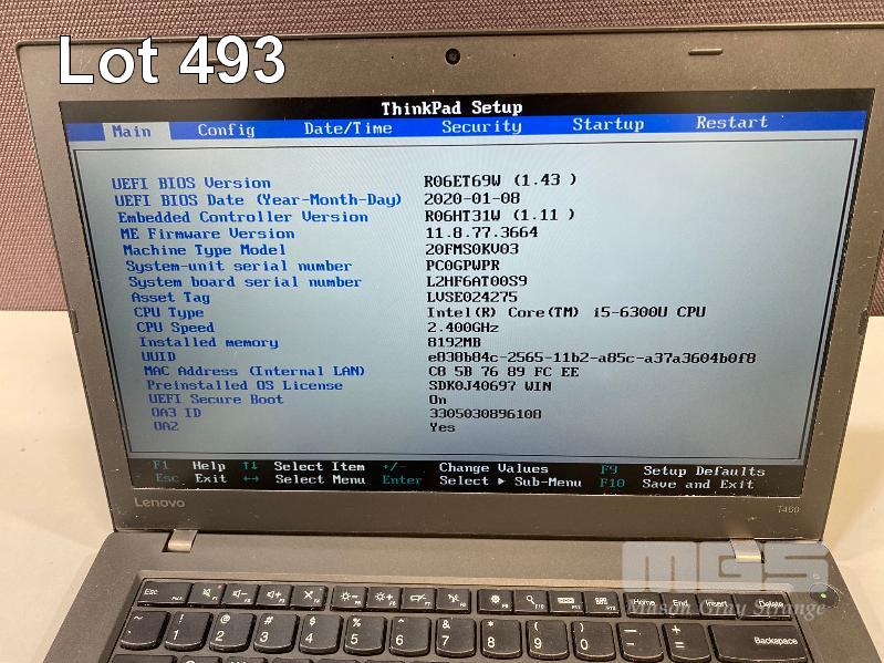 LAPTOP, LENOVO THINKPAD T460 (20FMS0KV03), CORE i5 6300U (6TH GEN) @ 2.4GHz, 8GB DDR3 RAM, 500GB SATA HDD, 14" WIDESCREEN (1920x1080), INTEL HD VIDEO, Wi-Fi, BLUETOOTH, WINDOWS 10 PRO INSTALLED & POWER SUPPLY (NOTE: MARKS ON SCREEN) S/N:PC0GPWPR