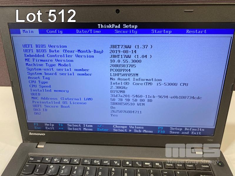 LAPTOP, LENOVO THINKPAD T450 (20BUS03705), CORE i5 5300U (5TH GEN) @ 2.3GHz, 8GB DDR3 RAM, 1TB SATA HDD, 14" WIDESCREEN (1366x768), INTEL HD VIDEO, Wi-Fi, BLUETOOTH, WINDOWS 10 PRO INSTALLED & POWER SUPPLY S/N:PC08PPX4