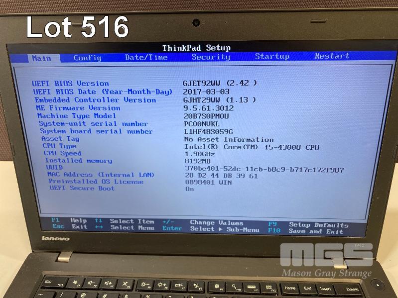 LAPTOP, LENOVO THINKPAD T440 (20B7S0PM0U), CORE i5 4300U (4TH GEN) @ 1.9GHz, 8GB DDR3 RAM, 500GB SATA HDD, 14" WIDESCREEN (1366x768), INTEL HD VIDEO, Wi-Fi, BLUETOOTH, WINDOWS 10 PRO INSTALLED & POWER SUPPLY S/N:PC00NVKL