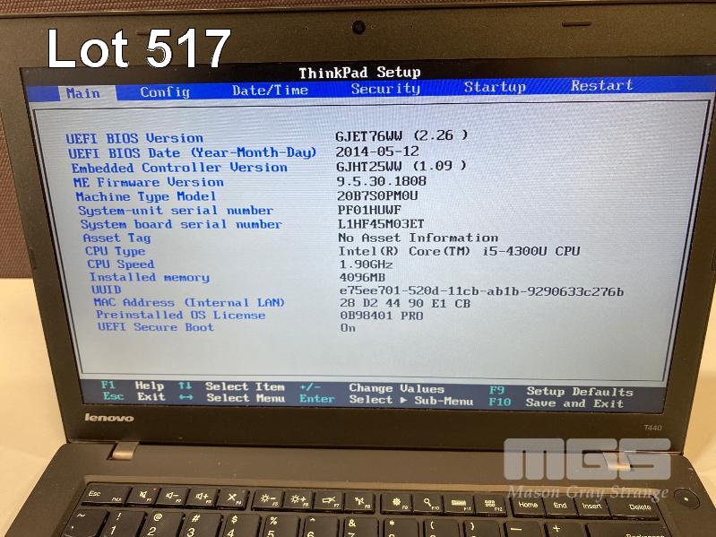 LAPTOP, LENOVO THINKPAD T440 (20B7S0PM0U), CORE i5 4300U (4TH GEN) @ 1.9GHz, 4GB DDR3 RAM, 500GB SATA HDD, 14" WIDESCREEN (1366x768), INTEL HD VIDEO, Wi-Fi, BLUETOOTH, WINDOWS 10 PRO INSTALLED & POWER SUPPLY S/N:PF01HUWF