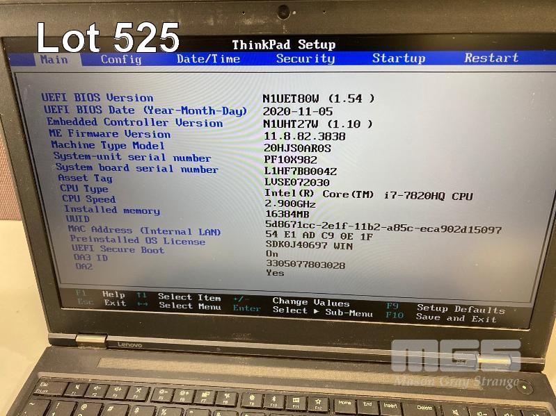 LAPTOP, LENOVO THINKPAD P51 MOBILE WORKSTATION (20HJS0AR0S), CORE i7 7820HQ (7TH GEN) @ 2.9GHz, 16GB DDR4 RAM, 256GB NVMe M.2 SSD, 15.6" WIDESCREEN (1920x1080), 4GB NVIDIA QUADRO M2200 VIDEO, Wi-Fi, BLUETOOTH, WINDOWS 10 PRO INSTALLED & POWER SUPPLY (NOTE: KEYBOARD FAULTY, SOME KEYS NOT WORKING, MISSING "T" KEY, DAMAGE TO KEYBOARD) S/N:PF10X982