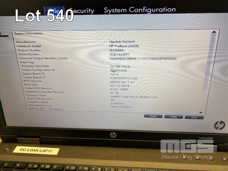 LAPTOP, HP PROBOOK 6560b (LE550AV), CORE i5 2540M (2ND GEN) @ 2.6GHz, 4GB DDR3 RAM, 250GB SATA HDD, DVD-RW, 15.6" WIDESCREEN (1366x768), INTEL HD VIDEO, Wi-Fi, BLUETOOTH, WINDOWS 7 PRO INSTALLED W/ LICENSE & POWER SUPPLY (NOTE: SCREEN LATCHES MISSING) S/N:5CB1443FP7