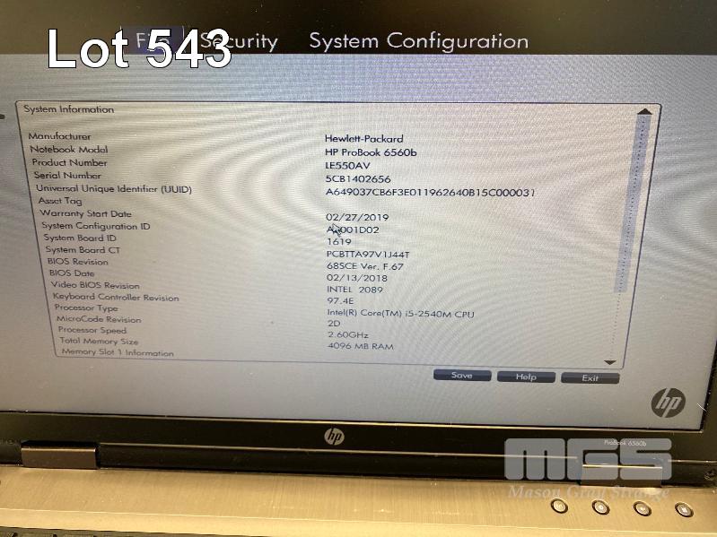LAPTOP, HP PROBOOK 6560b (LE550AV), CORE i5 2540M (2ND GEN) @ 2.6GHz, 4GB DDR3 RAM, 250GB SATA HDD, DVD-RW, 15.6" WIDESCREEN (1366x768), INTEL HD VIDEO, Wi-Fi, BLUETOOTH, WINDOWS 7 PRO INSTALLED W/ LICENSE & POWER SUPPLY (NOTE: SCREEN LATCHES MISSING, DAMAGE TO CASING) S/N:5CB1402656