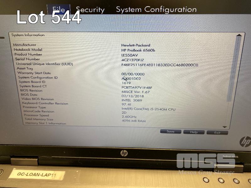 LAPTOP, HP PROBOOK 6560b (LE550AV), CORE i5 2540M (2ND GEN) @ 2.6GHz, 4GB DDR3 RAM, 250GB SATA HDD, DVD-RW, 15.6" WIDESCREEN (1366x768), INTEL HD VIDEO, Wi-Fi, BLUETOOTH, WINDOWS 7 PRO INSTALLED W/ LICENSE & POWER SUPPLY (NOTE: SCREEN LATCHES MISSING) S/N:4CZ1370FJZ