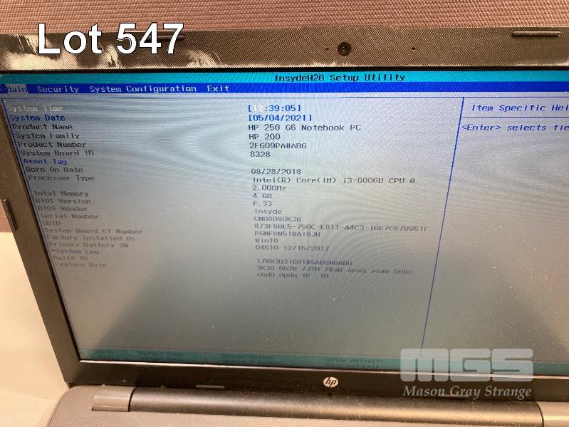 LAPTOP, HP 250 G6, CORE i3 6006U (6TH GEN) @ 2GHz, 4GB RAM, NO HDD, 15.6" WIDESCREEN & POWER SUPPLY S/N:CND8080K3R