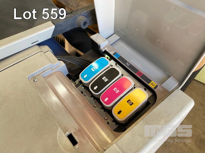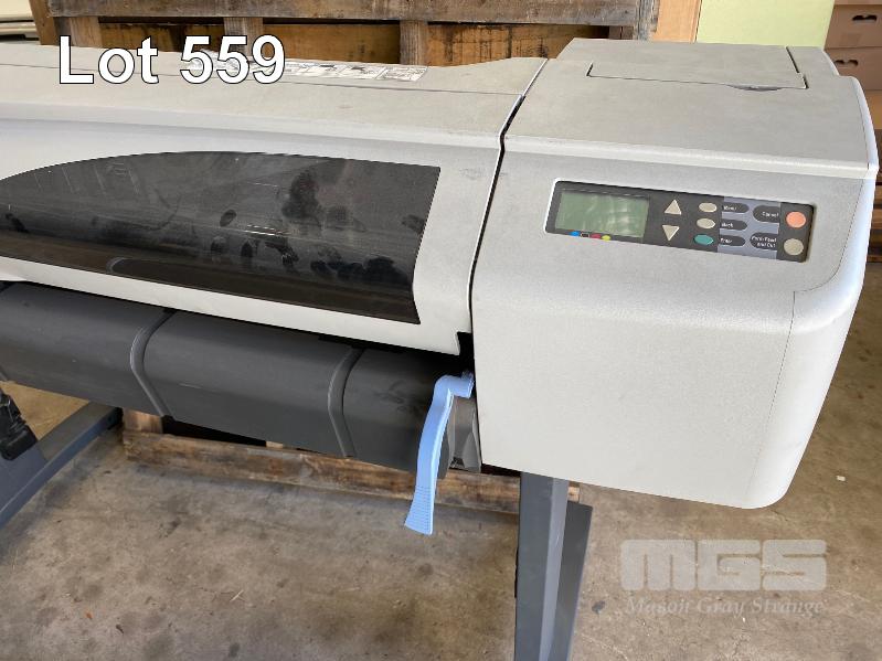 WIDE FORMAT PRINTER, HP DESIGNJET 500 (NOTE: TEST PAGE UNAVAILABLE, DAMAGED LEVER, DAMAGED PAPER CATCHER)
