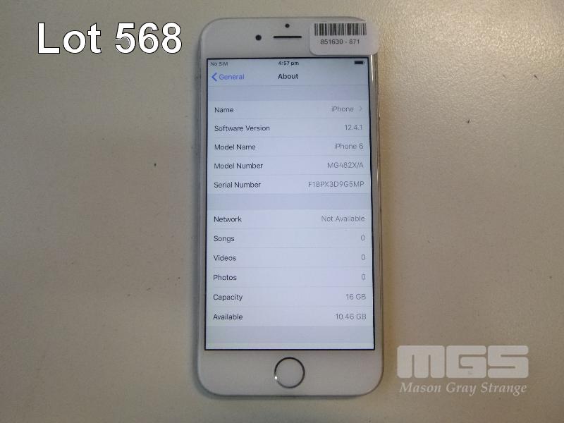 APPLE iPHONE 6, 16GB, SILVER, MODEL A1586 (NO CHARGER, NO CABLE) S/N:F18PX3D9G5MP