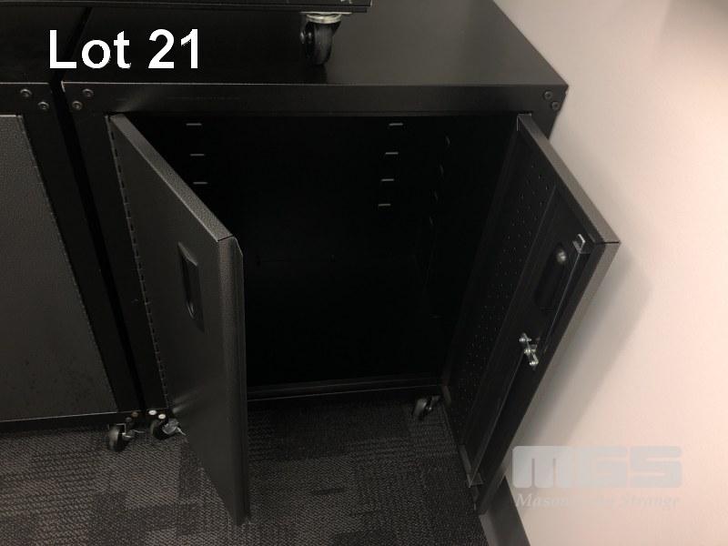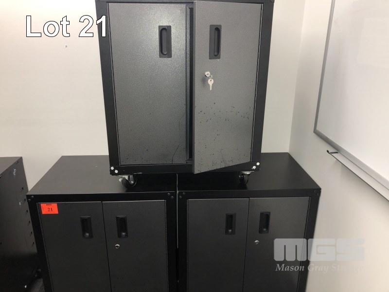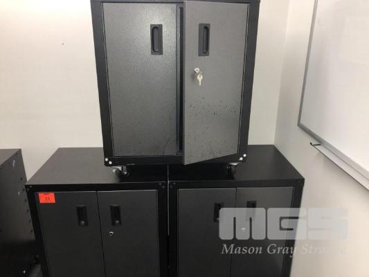 3 x STEEL LOWLINE STORAGE CABINETS, 2 DOOR, MOBILE 670 x 460 x 830mm (H), BLACK/DARK GREY, WITH KEYS