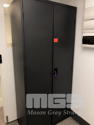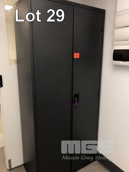 2 DOOR STEEL STOCK CUPBOARD . DARK GREY. 1800 X 900 mm APPROX.