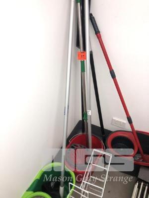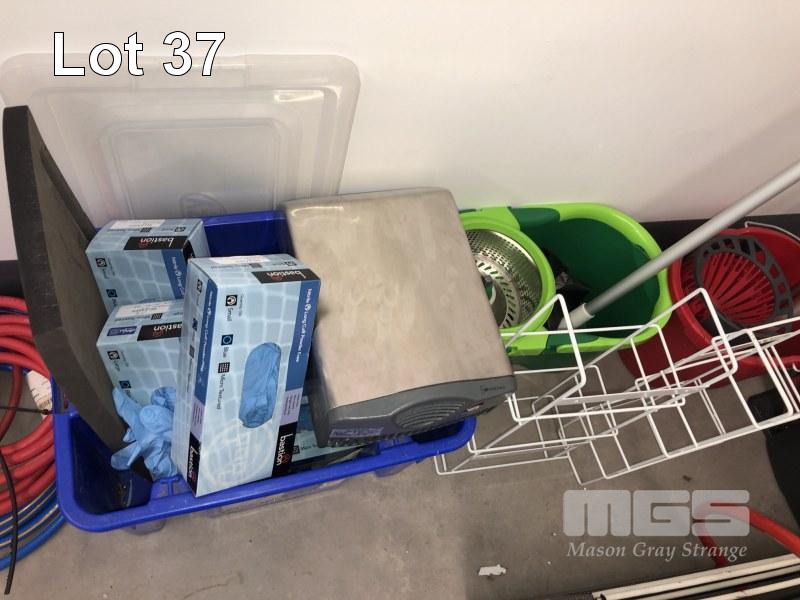 MOP BUCKET, MOP, GLOVE BOX RACKS, PVC BIN & HAND DRYER