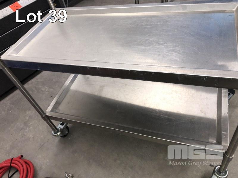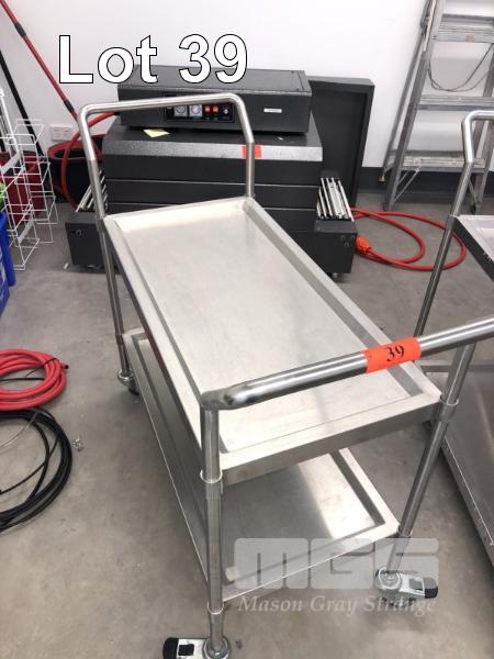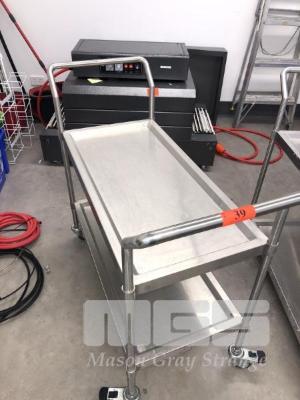 BRAYCO STAINLESS STEEL LAB TROLLEY, 2 TIER, LOCKING CASTORS, 880 x 410mm
