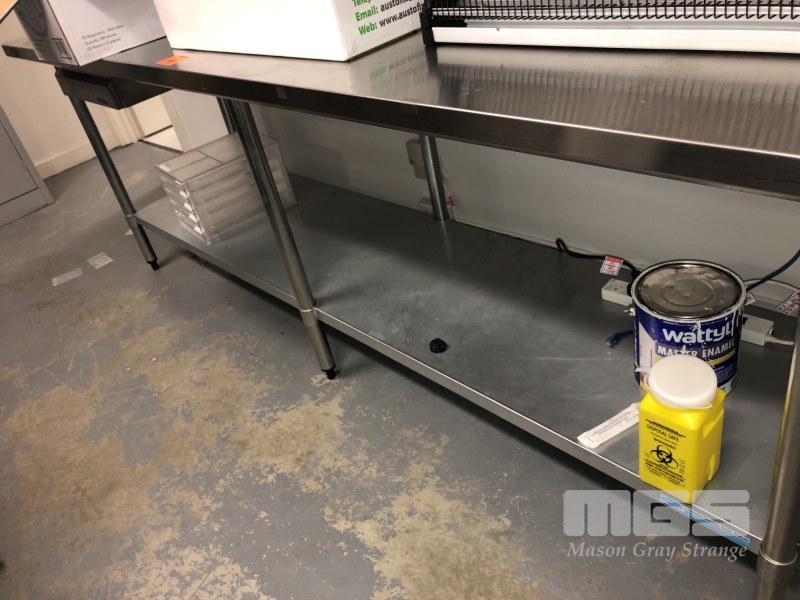 STAINLESS STEEL 2 TIER BENCH, BRAYCO 24409 x 760mm WITH SINGLE DRAWER