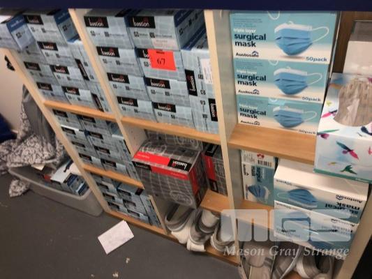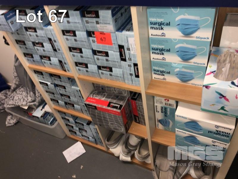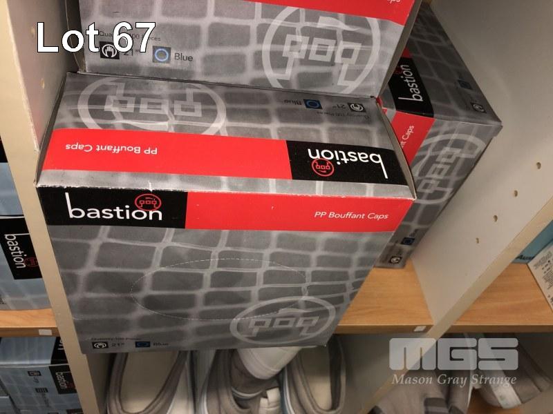 59 x CARTONS BASTION MICRO TEXTURED GLOVES 5 x CARTONS BASTION PP BOUFFANT CAPS, 14 x CARTONS SURGICAL MASKS & 3 x BAGS SHOE COVERS, (300)
