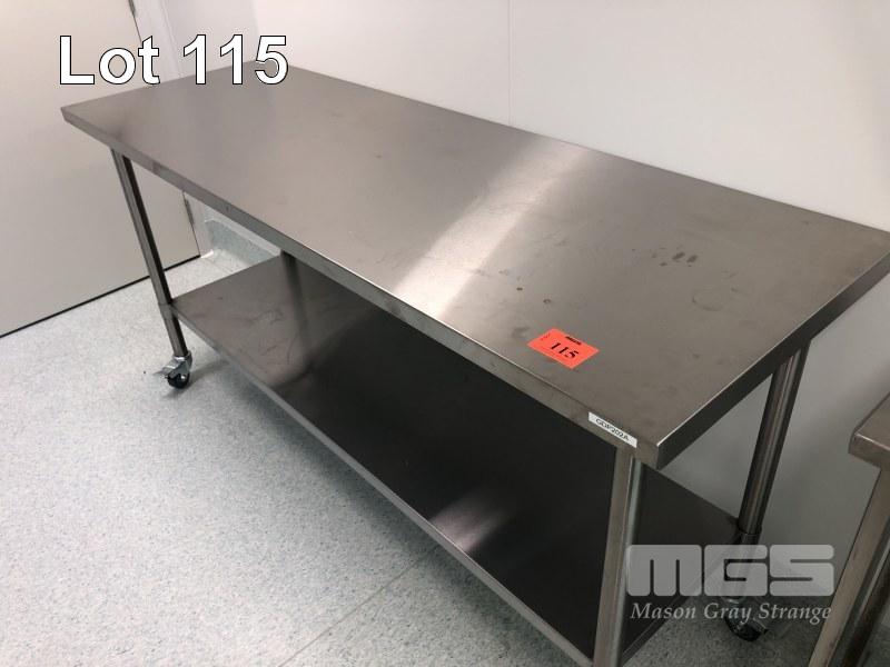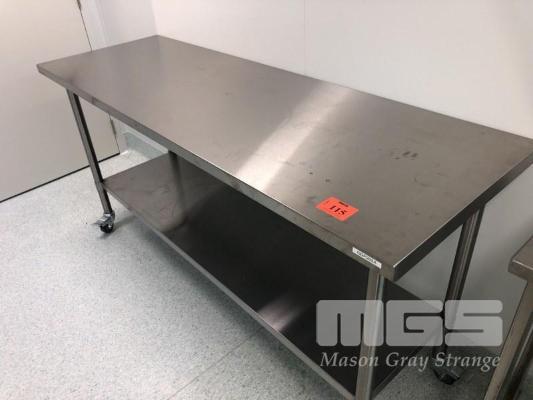 2 TIER STAINLESS STEEL BENCH, MOBILE, 1830 x 610 x 900mm (H), LOCKING CASTORS