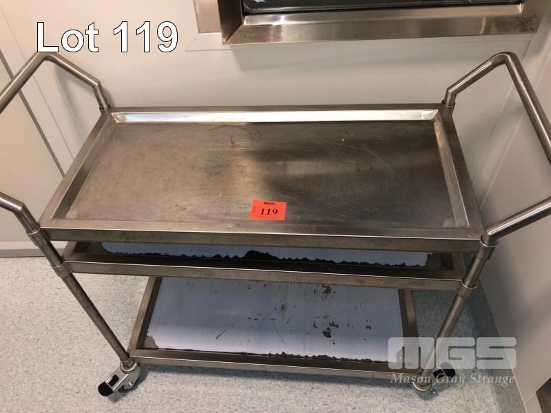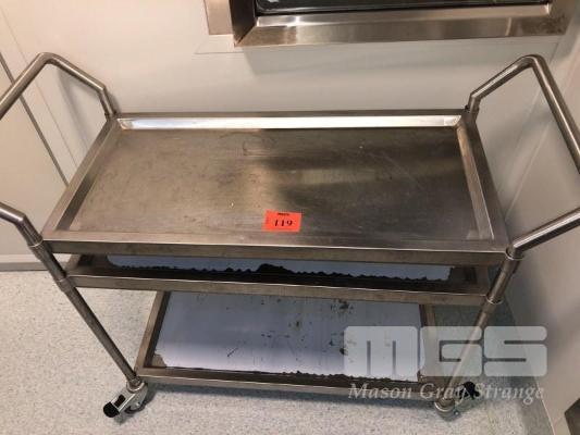 STAINLESS STEEL, 3 TIER TROLLEY, 870 x 420mm WITH LOCKING CASTORS
