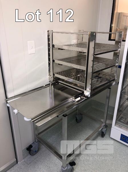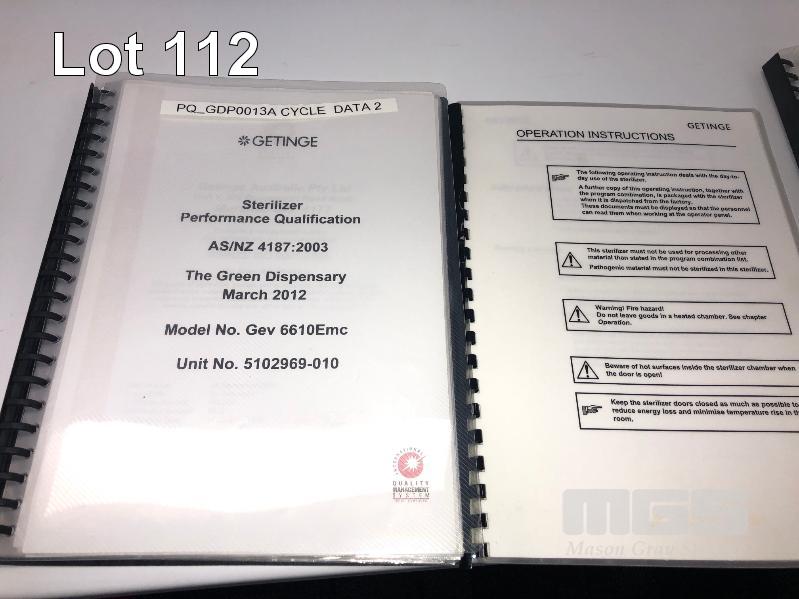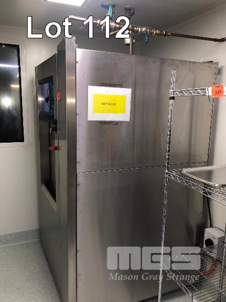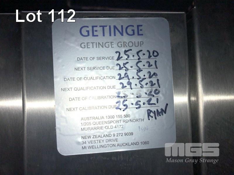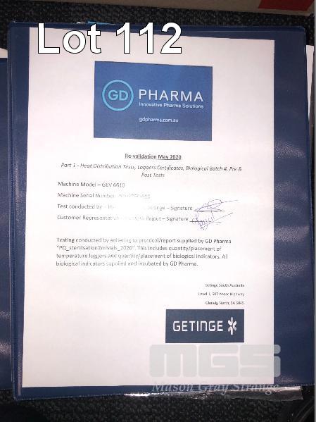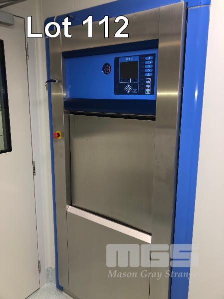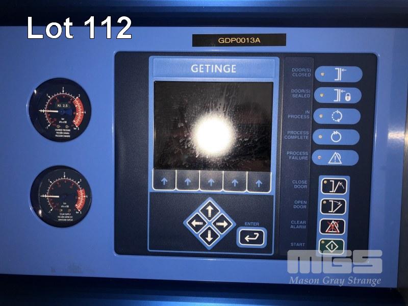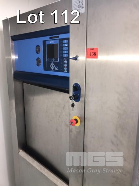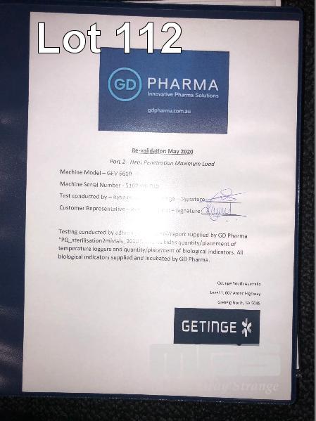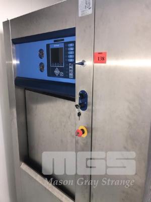 GETINGE STERILIZER CHAMBER MOD: GEV6610EMC UNIT NO: 5102969-010 PASS THRU COMMISSIONED JUNE 2011 HIGH PERFORMANCE STEAM AIR VENTILATOR STERILIZER PLC CONTROL, AUDIBLE & VISUAL NOTIFICATION. DESIGNED FOR THERMAL STERILIZATION OF LIQUID PRODUCT FULL SET MANUALS & SPECS 2 x INFEED RACKS , TROLLEYS & 4 TIER RACKS