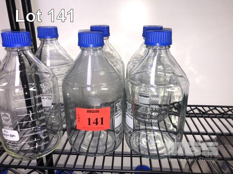 6 x 2 LITRE GLASS LABORATORY BOTTLES WITH CAP, DURAM