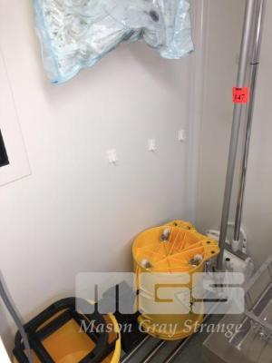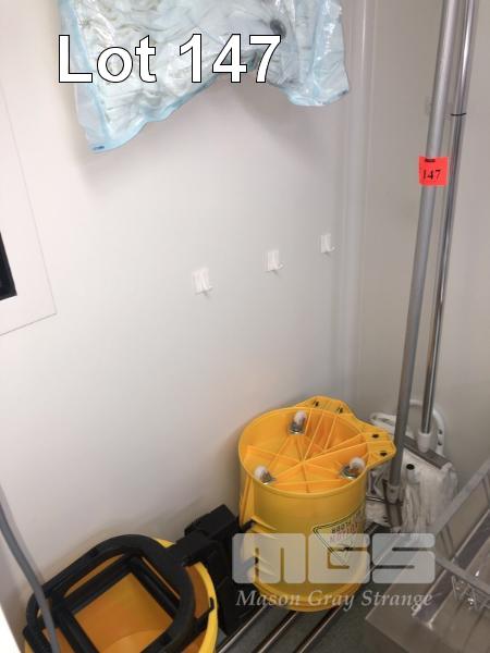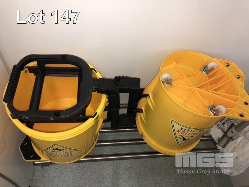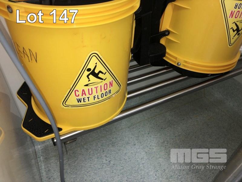 2 x SPECIALTY MOPS, 2 x MOP BUCKETS, STAINLESS STEEL TUBE BUCKET RACK & WALL BRACKETS