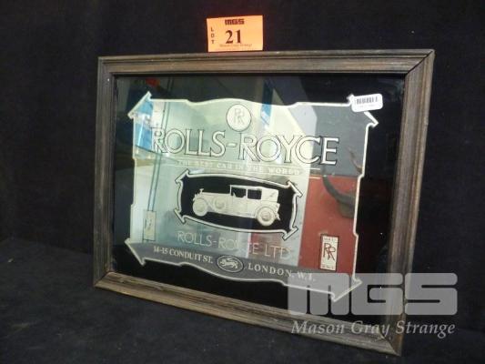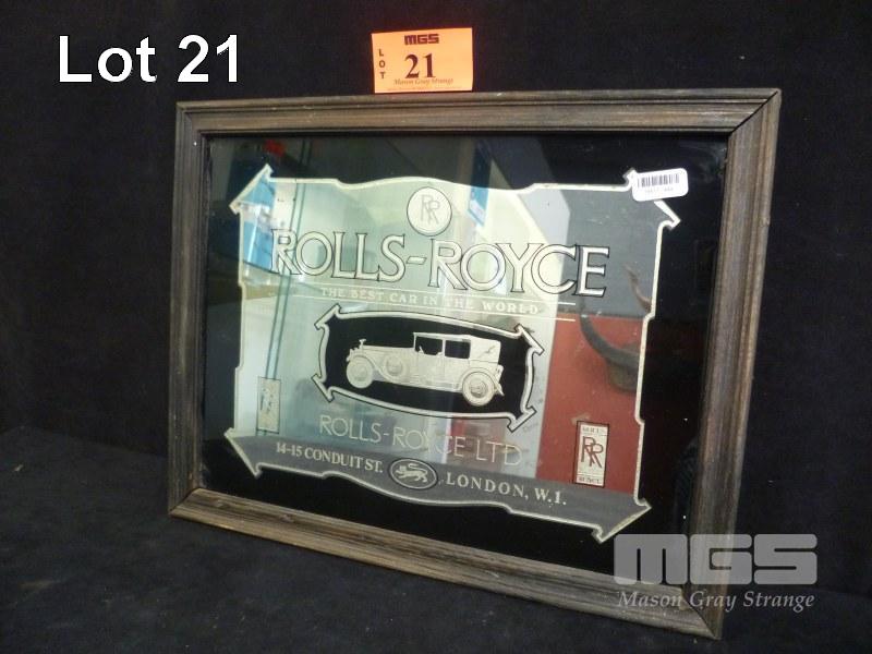 VINTAGE ROLLS ROYCE BAR MIRROR, "THE BEST CAR IN THE WORLD"