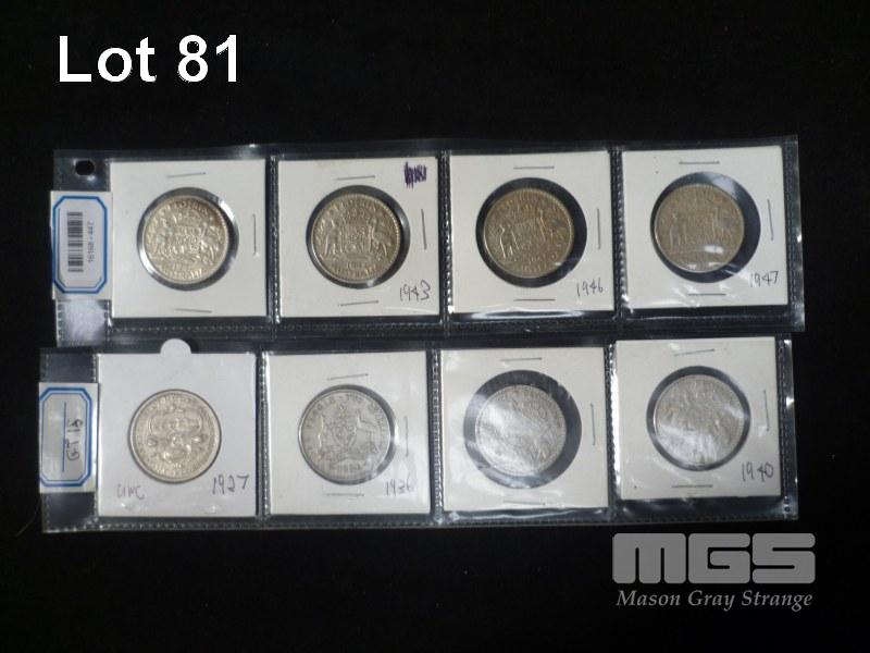 8 X AUSTRALIA FLORINS, INC; 1927 (c), 1936, 1938, 1940, 1942, 1943, 1946, 1947