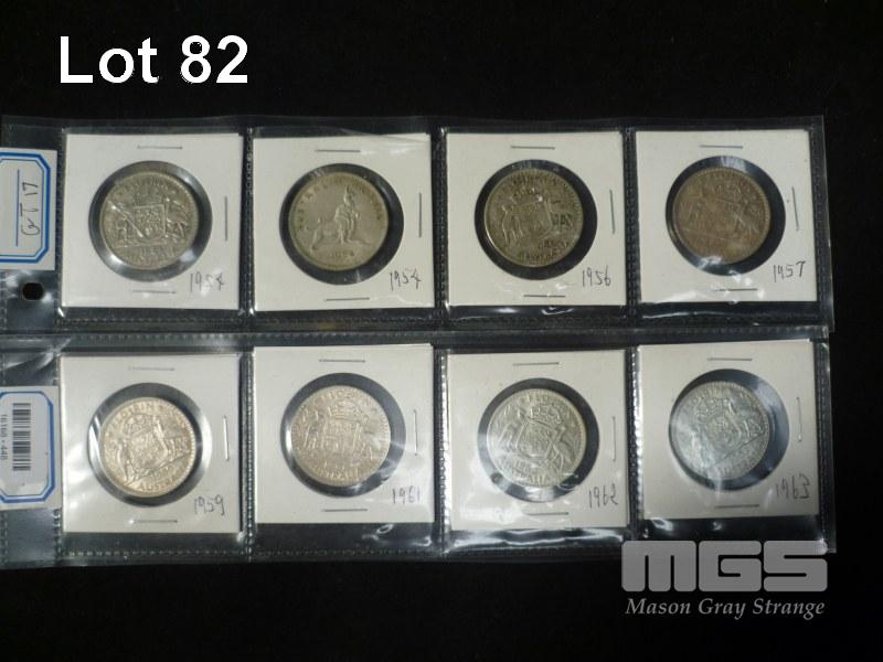8 X AUSTRALIA FLORINS, INC; 1954, 1954 (c), 1956, 1957, 1959, 1961, 1962, 1963