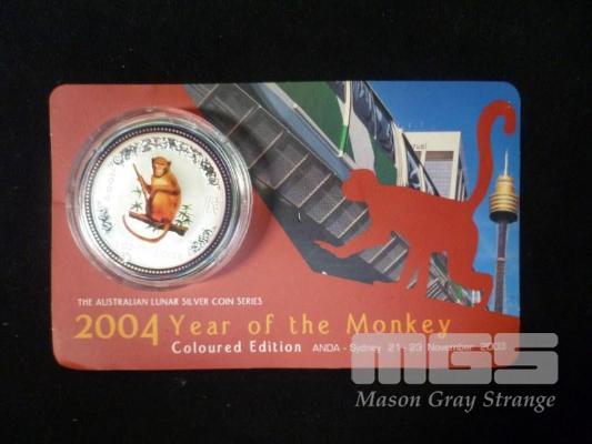 2004 $5 1 TROY OZ PROOF FINE SILVER "YEAR OF THE MONKEY" COIN