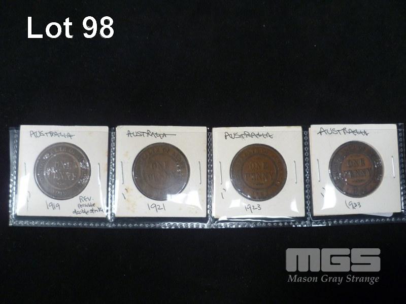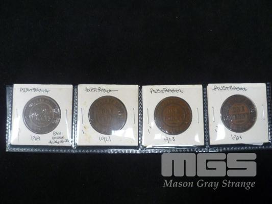 1919,21,23,33 AUST PENNYS 6 PEARLS OR BETTER HIGHER GRADES