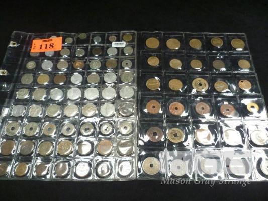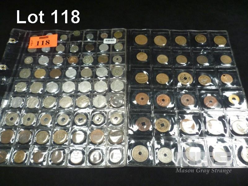 105 X ASSORTED INTERNATIONAL COINS ITALIAN, DUTCH, FRENCH, MIDDLE EASTERN, DANISH, SPANISH, ETC EARLY TO MID 1900'S 2 X SHEETS