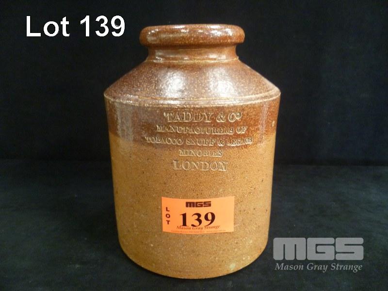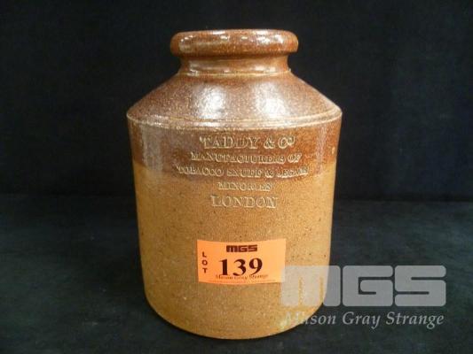 TADDY & CO POTTERY JAR TOBACCO SNUFF & SEGARS, NO STOPPER