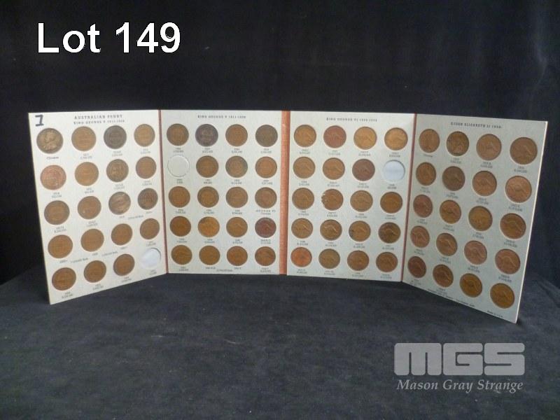 1911- 1964 AUST PENNYS SET LESS 1930-25-46 77 COINS MIXED GRADES