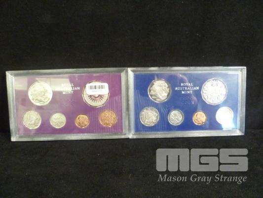 2 X ROYAL AUSTRALIAN MINT PROOF COIN SETS IN DISPLAY CASE, 1977 & 1978