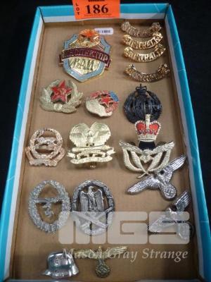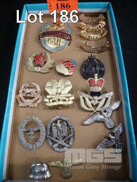 ASSORTED MILITARY BADGES & PINS, INC; AUSTRALIA, RUSSIA, GERMANY, ETC (SOME REPLICA'S)